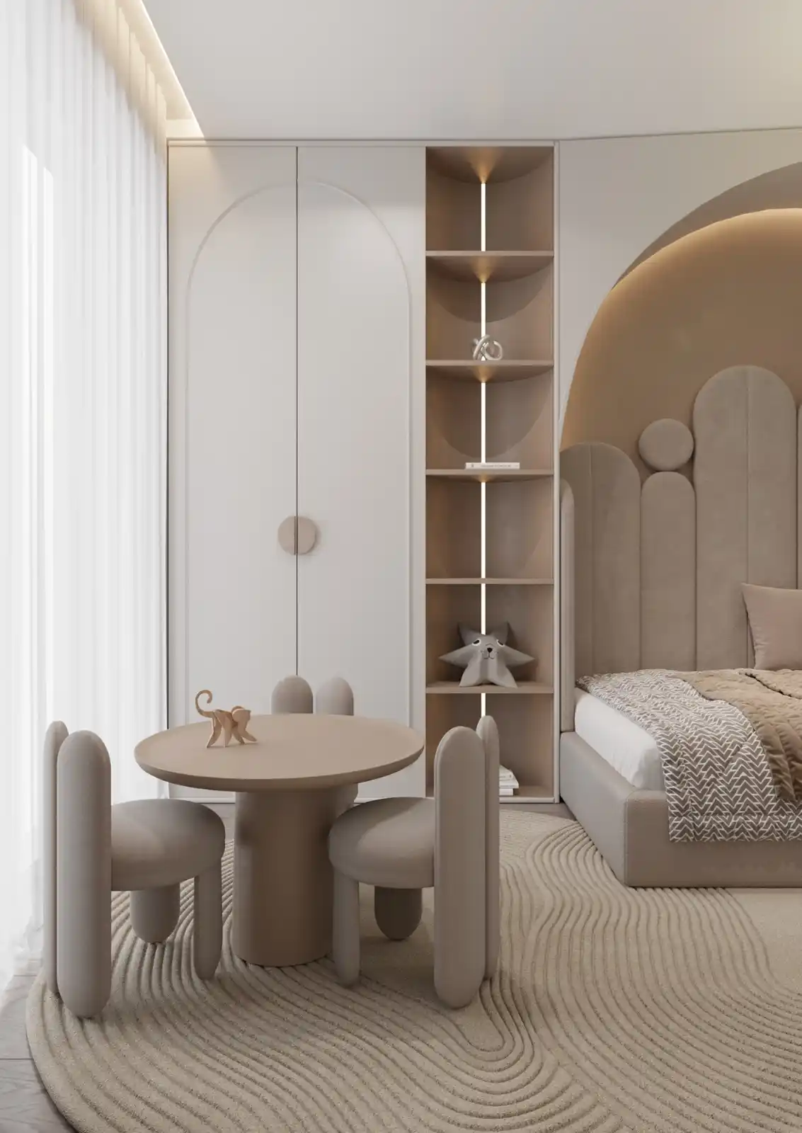Discover the fun with luxury of modern children's rooms with exceptional designs at MISTUDIU your go-to source for bespoke furniture in the UAE. Our skilled team expertly transforms concepts into reality, ensuring each piece is crafted with precision and style. From initial design to final installation, we create functional and beautiful spaces tailored to your child's needs and preferences.