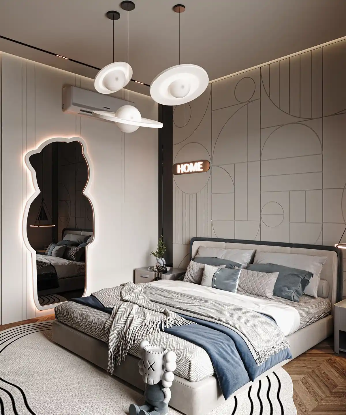 A modern minimalist kids' room design prioritizes simplicity, functionality, and a calming atmosphere.