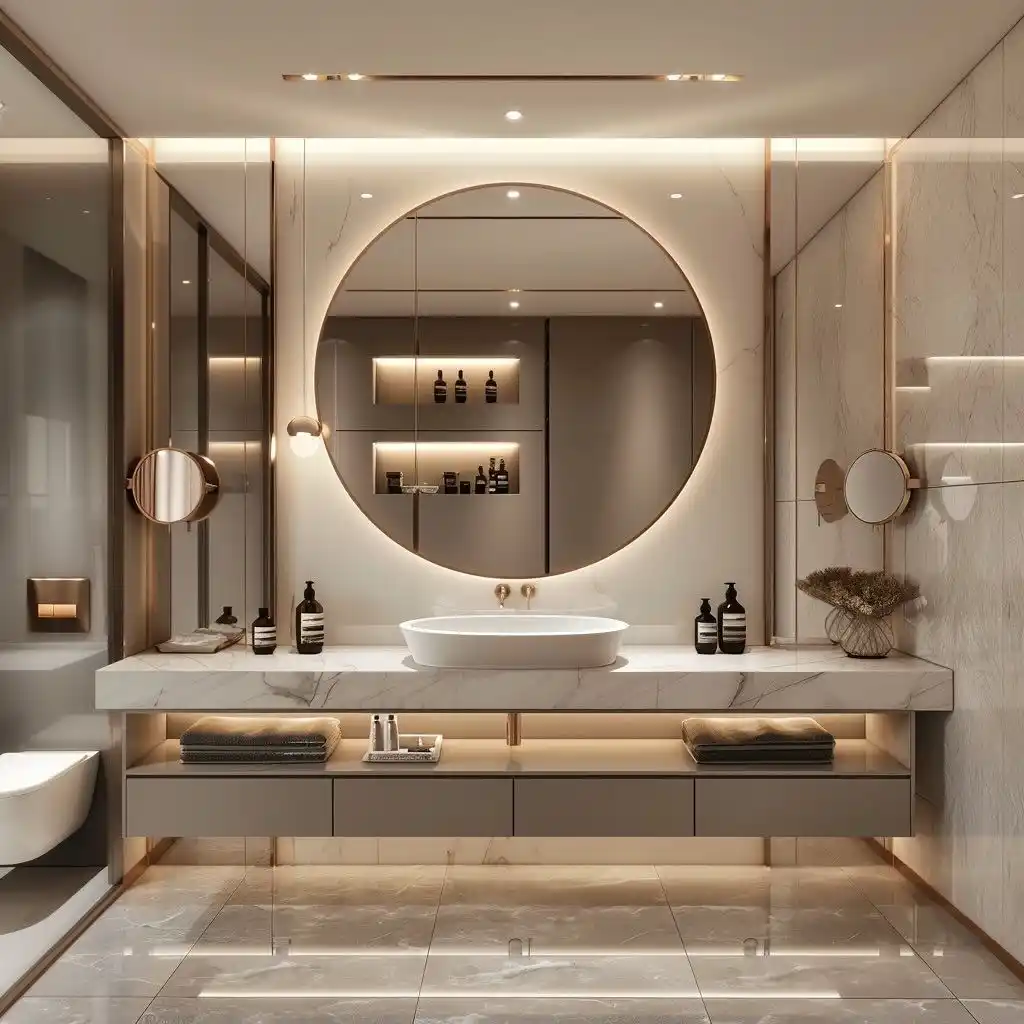 Our contemporary vanity designs are all about sleek lines, modern aesthetics, and high functionality. With a focus on minimal clutter and cutting-edge appliances, these vanities incorporate clean surfaces, bold accents, and innovative storage solutions.